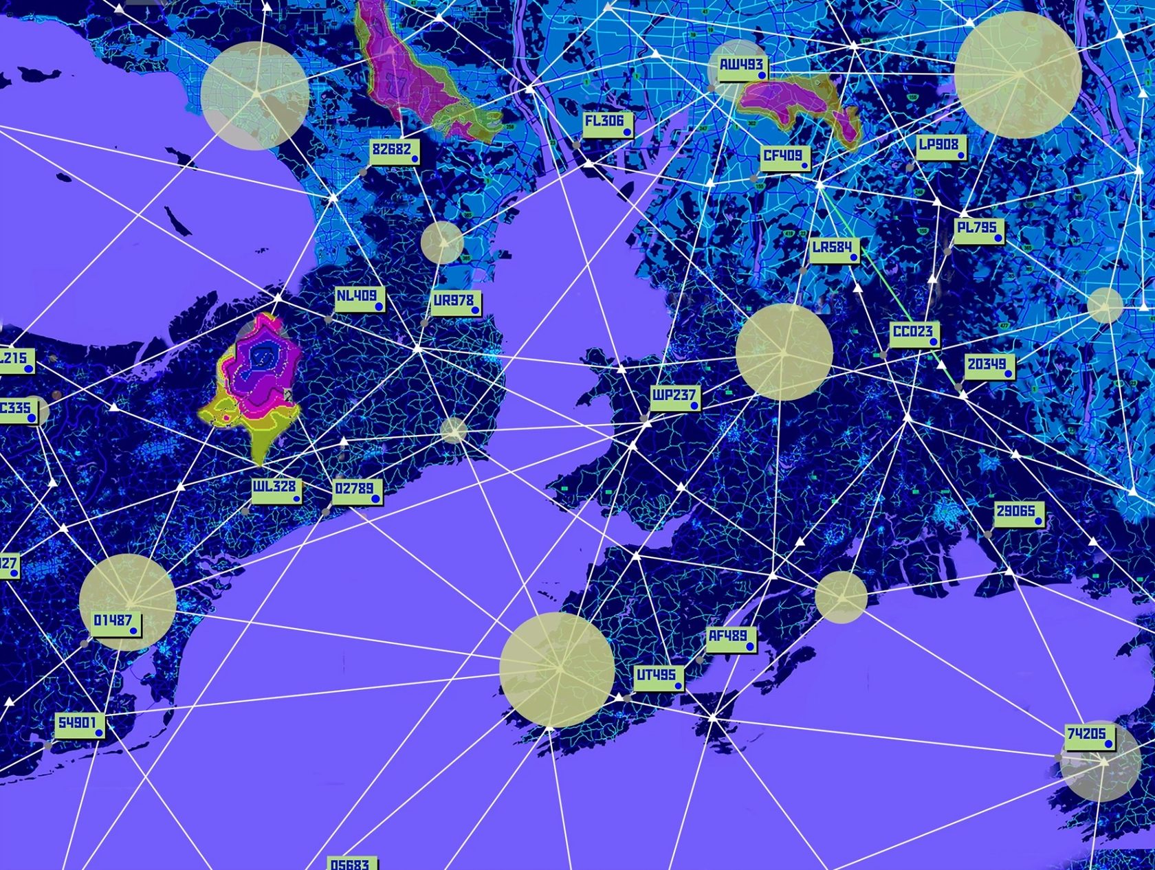 Видеоинсталляция представляет собой несуществующую карту воздушного движения. В основе её создания лежат реальные интерактивные схемы и чертежи, которые авиадиспетчеры используют для анализа данных и управления воздушными судами.